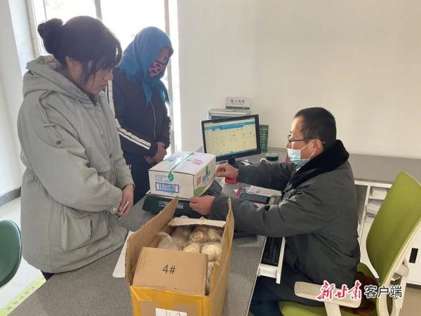 1月6日上午,甘肅日報社、甘肅日報報業(yè)集團“新春走基層——走郵路 看新局”全媒體采訪小組一行來到榆中縣貢井鎮(zhèn),見到村民張婉霞正在貢井郵政所里忙著寄出自家產(chǎn)的百合。