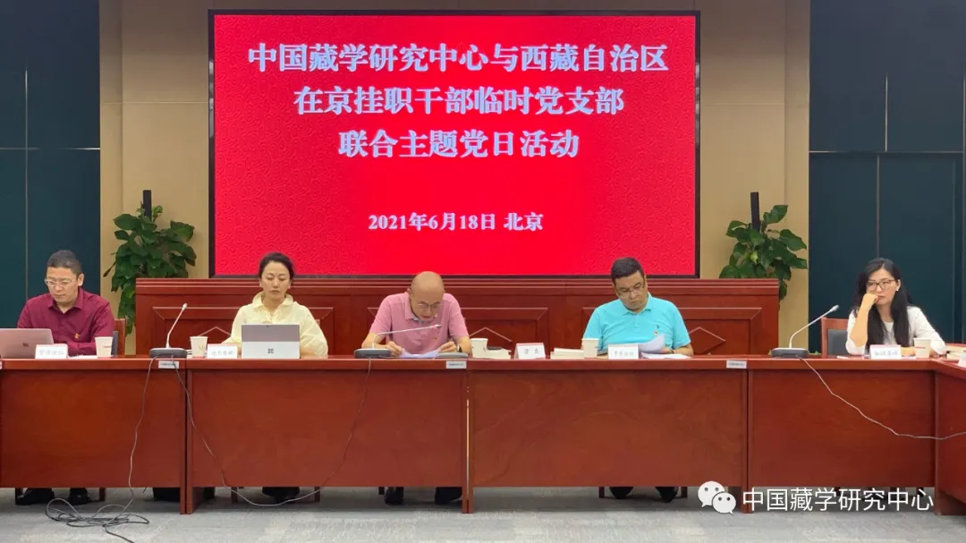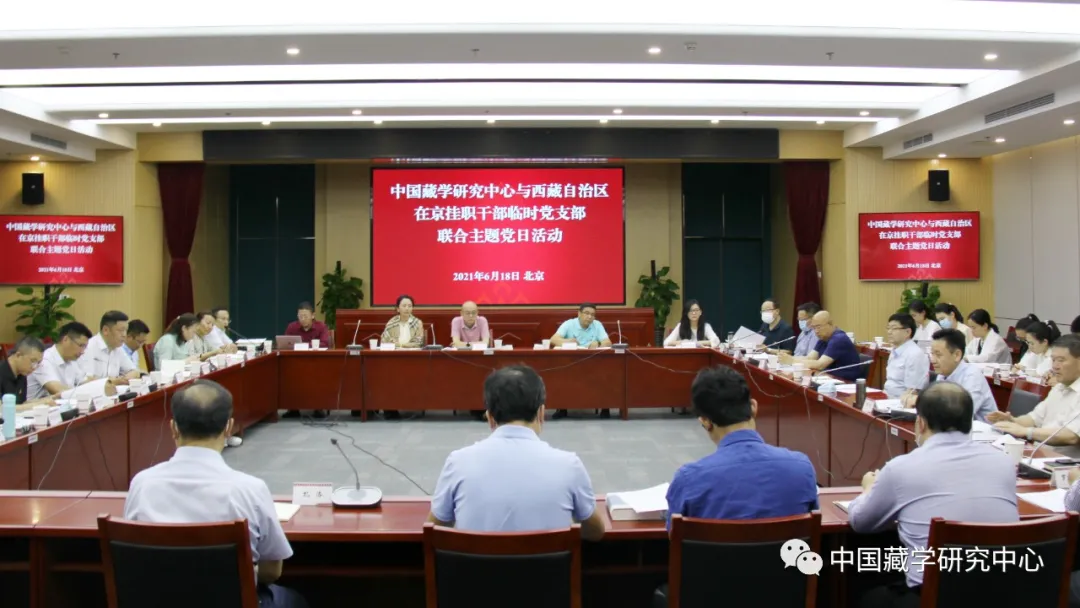 6月18日下午,中國(guó)藏學(xué)研究中心與西藏自治區(qū)在京掛職干部臨時(shí)黨支部舉行聯(lián)合主題黨日活動(dòng),學(xué)習(xí)貫徹習(xí)近平總書記在黨史學(xué)習(xí)教育動(dòng)員大會(huì)上的重要講話精神,學(xué)習(xí)《西藏和平解放與繁榮發(fā)展》白皮書,并就加強(qiáng)合作交流,推動(dòng)藏學(xué)研究更好為西藏長(zhǎng)治久安和高質(zhì)量發(fā)展服務(wù),推進(jìn)藏研中心建設(shè)國(guó)家涉藏高端智庫(kù)進(jìn)行座談交流。藏研中心黨組成員、各科研業(yè)務(wù)部門負(fù)責(zé)人、科研業(yè)務(wù)辦公室全體人員和17位西藏自治區(qū)在京掛職干部參加活動(dòng)。座談?dòng)晌鞑卦诰炻毟刹颗R時(shí)黨支部書記、水利部建設(shè)司副司長(zhǎng)白瑪羅布主持,藏研中心黨組書記陳宗榮、總干事鄭堆出席活動(dòng)并講話。