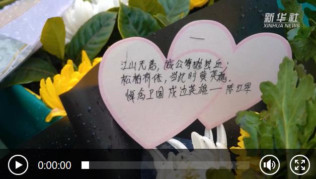 這是在甘肅省蘭州市烈士陵園拍攝的網(wǎng)友給陳紅軍烈士敬獻的花束留言(2月23日攝)。新華社記者 范培珅 攝