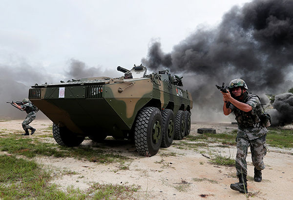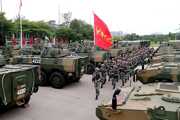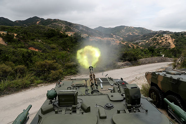 ↑駐香港部隊某旅裝步一連組織人車協(xié)同訓(xùn)練(5月24日攝)。新華社發(fā)(易定 攝)