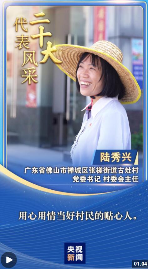 “二十大代表風(fēng)采”一起來(lái)認(rèn)識(shí)廣東省佛山市古灶村黨委書(shū)記、村委會(huì)主任陸秀興。