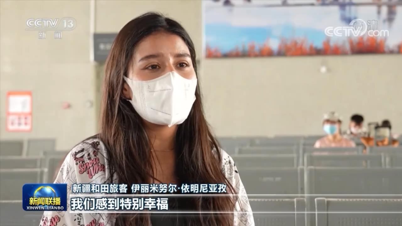新疆和田旅客 伊麗米努爾·依明尼亞孜:我們雖然遠(yuǎn)在邊疆,但是現(xiàn)在火車開到了家門口,生活條件越來越好了。生活在這么偉大的時代,我們感到特別幸福。