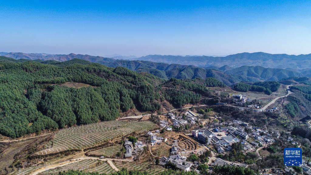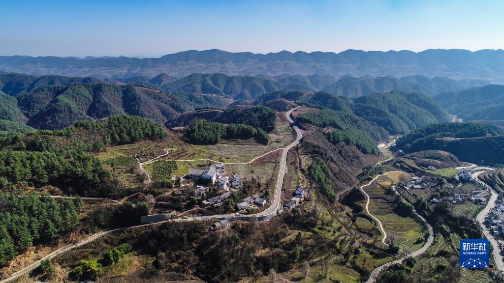 貴州省畢節(jié)市赫章縣河鎮(zhèn)鄉(xiāng)海雀村風(fēng)貌(2018年11月28日攝,無(wú)人機(jī)照片)。新華社記者 陶亮 攝