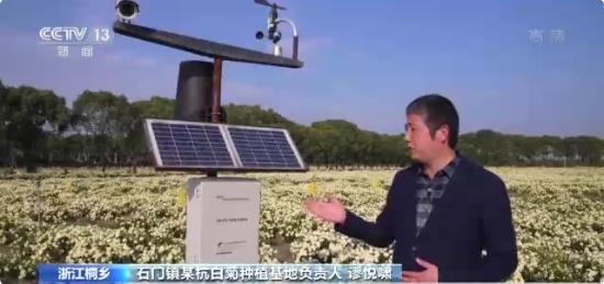 浙江桐鄉(xiāng)石門鎮(zhèn)某杭白菊種植基地負(fù)責(zé)人 謬悅嘯:這是一臺(tái)無(wú)線農(nóng)業(yè)氣象綜合監(jiān)測(cè)站,它就像我們的眼睛,以前我們都是走到土地里面查看我們的一個(gè)種植情況,現(xiàn)在它能夠給我們檢測(cè)到光照、土壤、水分等信息,傳送到大數(shù)據(jù)平臺(tái),來(lái)幫助我們預(yù)測(cè)氣象所帶來(lái)的一個(gè)病蟲(chóng)害等問(wèn)題,為我們杭白菊提質(zhì)增效、保駕護(hù)航。