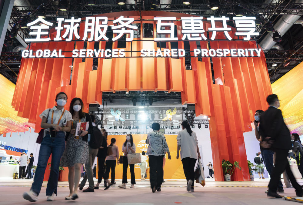 觀眾在2022年中國國際服務(wù)貿(mào)易交易會上參觀中國服務(wù)貿(mào)易成就展專區(qū)(2022年9月1日攝)。新華社記者 才揚 攝