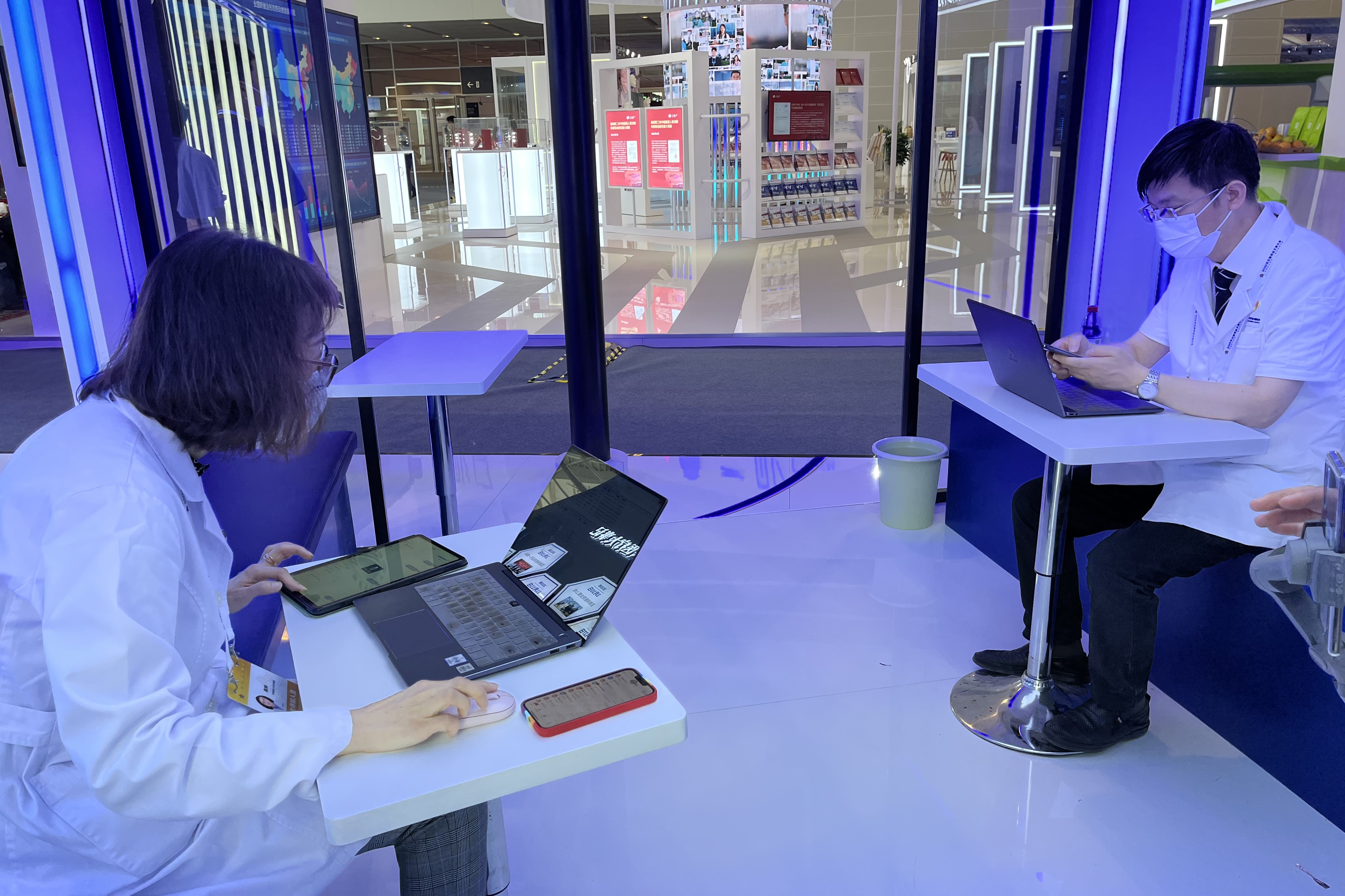 記者來(lái)到天津醫(yī)科大學(xué)總醫(yī)院互聯(lián)網(wǎng)醫(yī)院展區(qū),這里的工作人員介紹,經(jīng)過(guò)兩年多的發(fā)展,該互聯(lián)網(wǎng)醫(yī)院已經(jīng)開(kāi)通用藥指導(dǎo)、檢查預(yù)約、入戶護(hù)理、數(shù)字膠片、專病管家等全流程互聯(lián)網(wǎng)醫(yī)療服務(wù),每天的接診人數(shù)最高突破3400人次,2021年共接診超過(guò)60萬(wàn)人次。