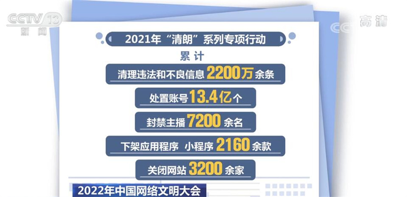 中國(guó)網(wǎng)絡(luò)文明大會(huì)|2021年“清朗”系列專項(xiàng)行動(dòng)處置賬號(hào)13.4億個(gè)