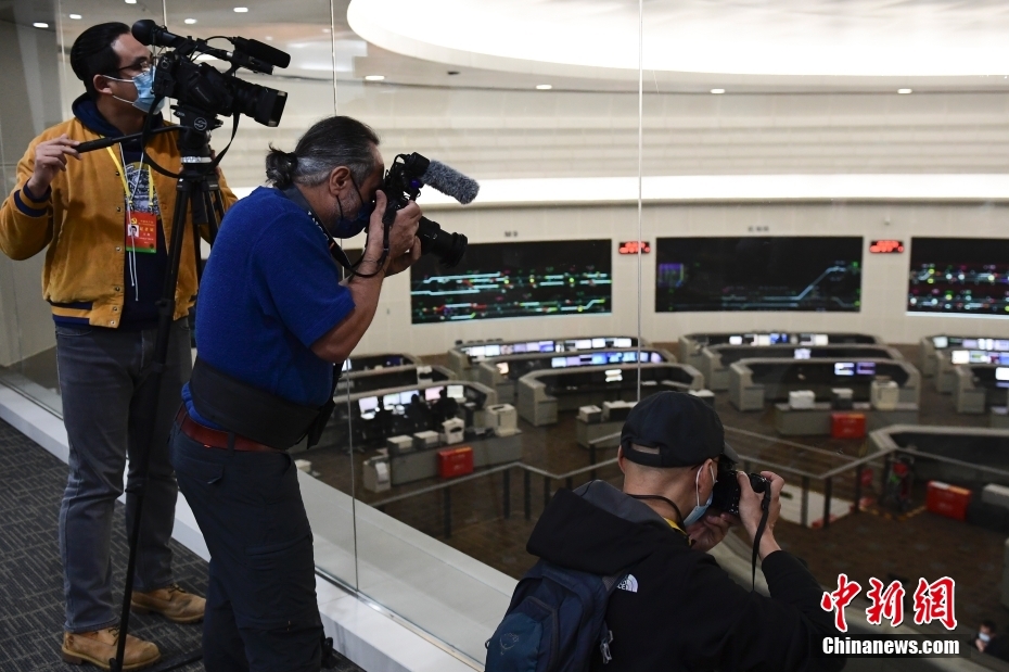 10月17日,媒體記者在北京市軌道交通指揮中心拍攝軌道交通指揮大廳。中新社記者 田雨昊 攝