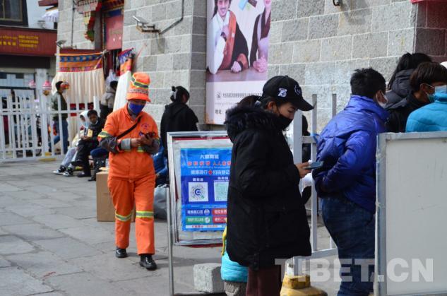 進入八廓商城后,提示戴上口罩的廣播便一直在耳邊環(huán)繞。在進入商城之前,還需要在入口處完成健康碼掃碼登記、測量體溫。