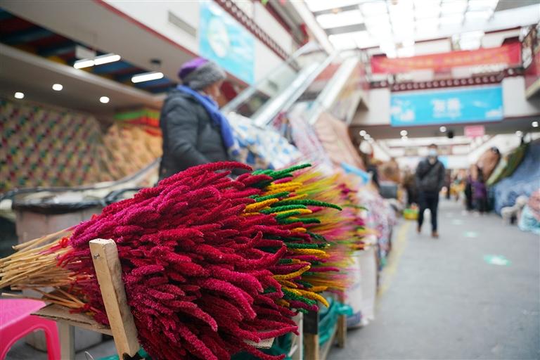 “買1束羅薩梅朵吧。1束5支,這些包好的統(tǒng)統(tǒng)只要4塊錢!”來自拉薩市堆龍德慶區(qū)桑木二村的老板白扎身前攤位上擺滿了艷麗多彩的羅薩梅朵,他向來往的人群大聲吆喝著。趁著交易間隙白扎向記者介紹:“我們村家家戶戶都是制作羅薩梅朵的好手,你看我攤位上的這些,全是自己家里制作的,我賣羅薩梅朵已經(jīng)5年了,每年都能賣1萬多塊。賺到的錢,準(zhǔn)備給家人買新衣服,一起過個好年?!?/p>