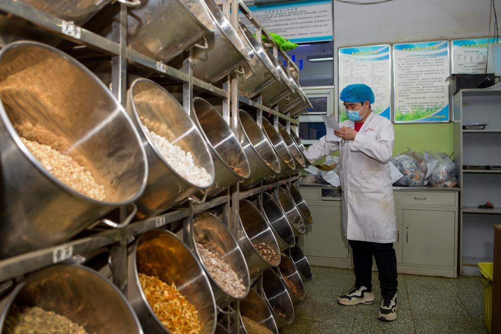 2022年2月25日,內(nèi)蒙古自治區(qū)中醫(yī)醫(yī)院藥劑師根據(jù)處方調(diào)配中藥。新華社記者 李志鵬 攝