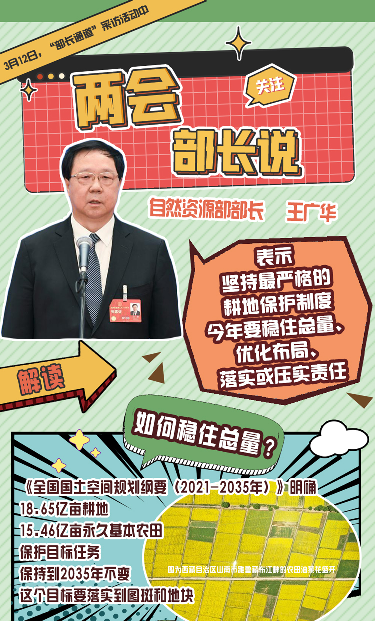自然資源部部長(zhǎng)王廣華12日在十四屆全國(guó)人大一次會(huì)議第三場(chǎng)“部長(zhǎng)通道”上回應(yīng)熱點(diǎn)話題時(shí)表示,我國(guó)將堅(jiān)守耕地紅線,確保礦產(chǎn)資源安全,促進(jìn)綠色發(fā)展。 >>