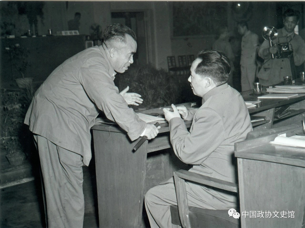 1950年6月23日,毛主席在大會(huì)休息時(shí)與馬敘倫交談。