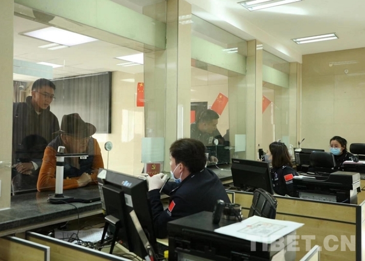 圖為藏歷新年期間民警為游客群眾辦理邊境通行證 攝影:徐錫萬(wàn)