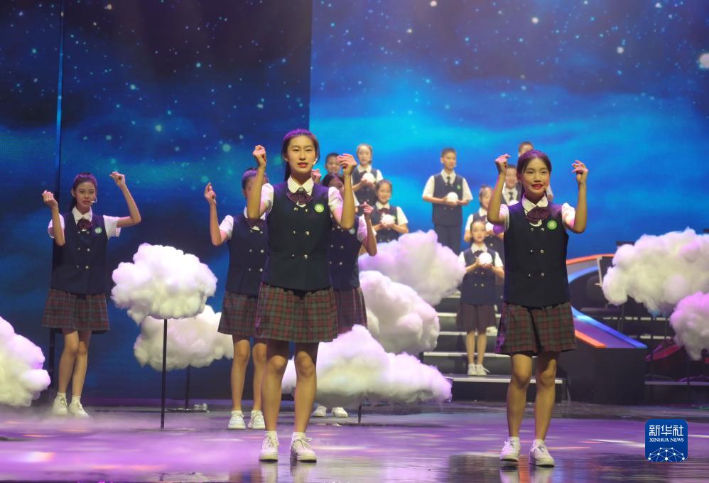 7月17日,廈門六中博雅合唱團(tuán)演唱歌曲《夜空中最亮的星》。新華社記者 林善傳 攝