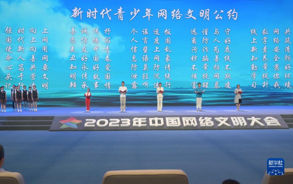 7月18日,2023年中國網(wǎng)絡(luò)文明大會(huì)主論壇發(fā)布《新時(shí)代青少年網(wǎng)絡(luò)文明公約》。新華社記者林善傳攝