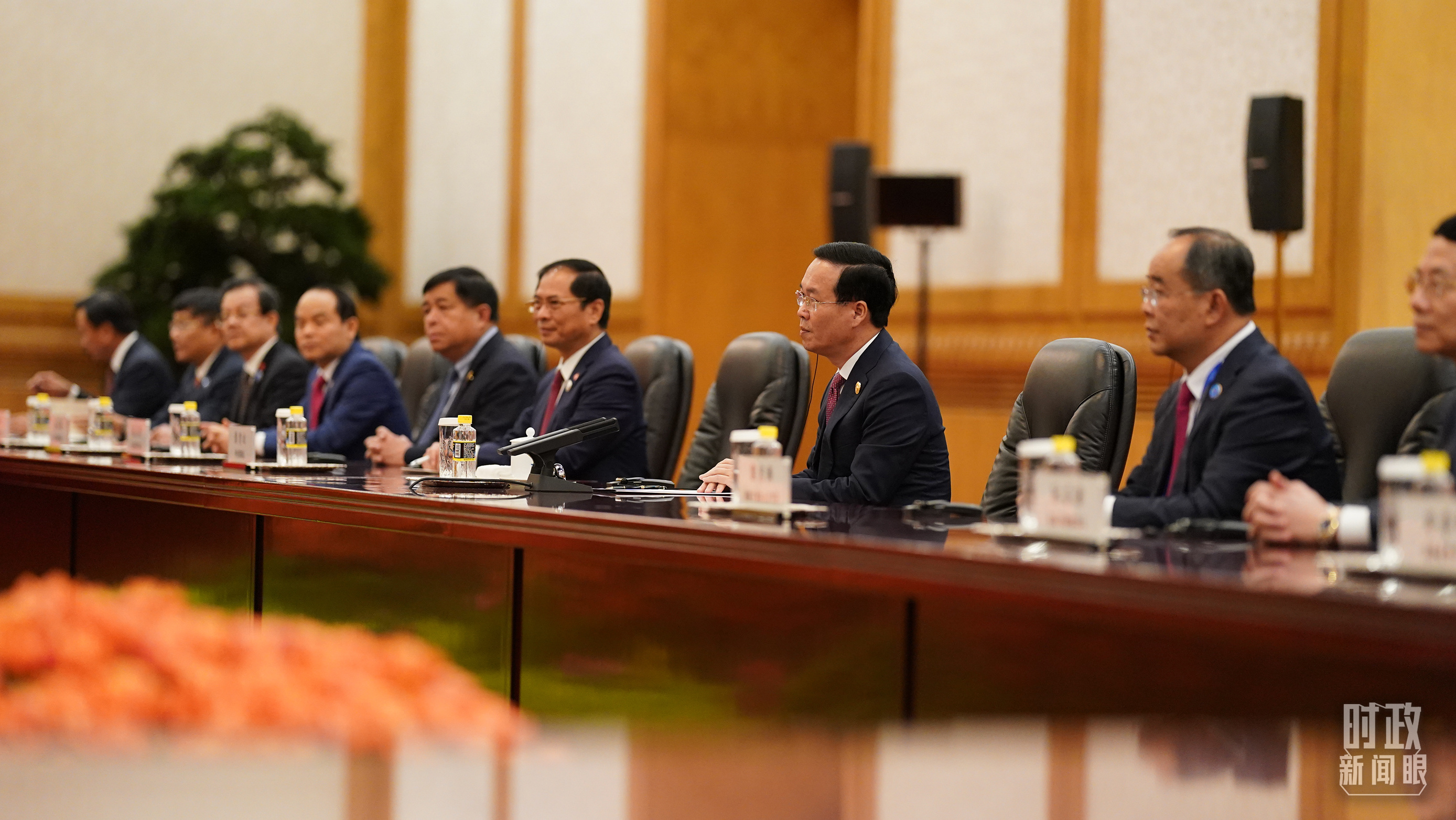 中越兩國(guó)領(lǐng)導(dǎo)人會(huì)見(jiàn)現(xiàn)場(chǎng)。(總臺(tái)國(guó)廣記者李晉拍攝)