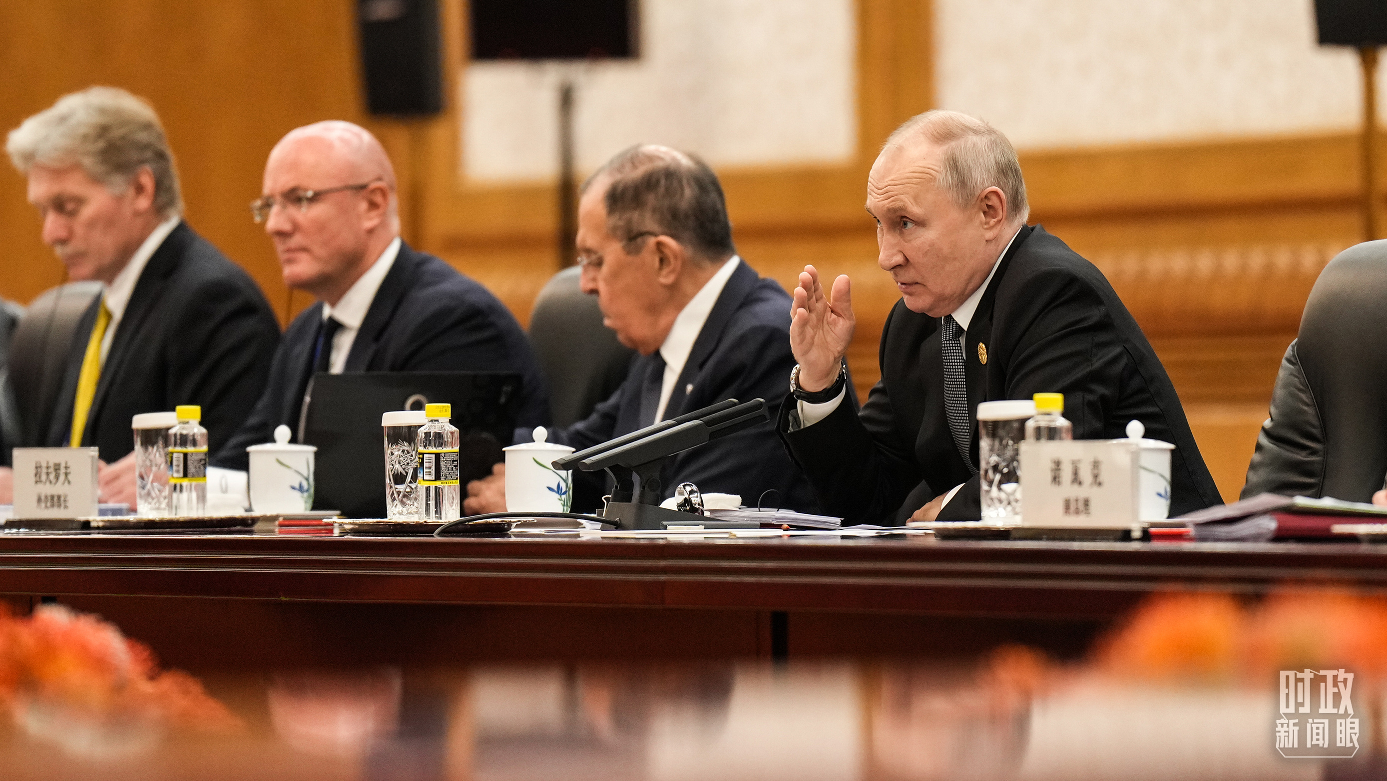 俄羅斯總統(tǒng)普京在會(huì)談現(xiàn)場(chǎng)。(總臺(tái)國(guó)廣記者李晉拍攝)