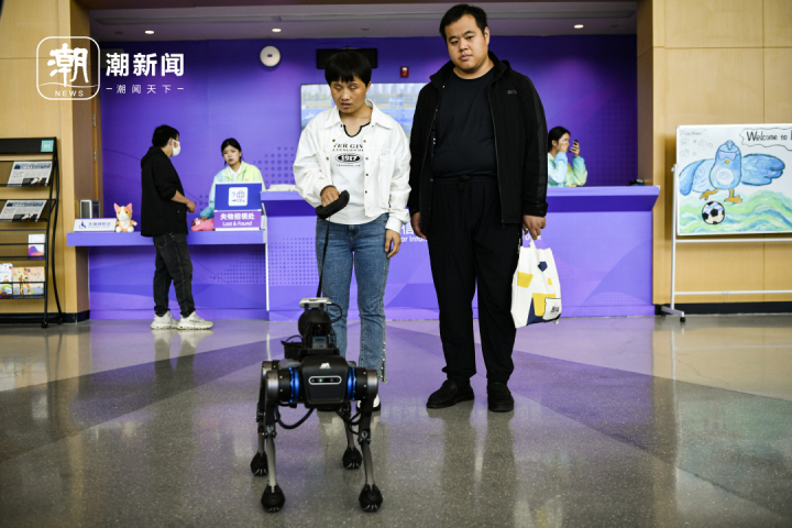 電子導(dǎo)盲犬為視障人士陳蓮和張建新帶路。