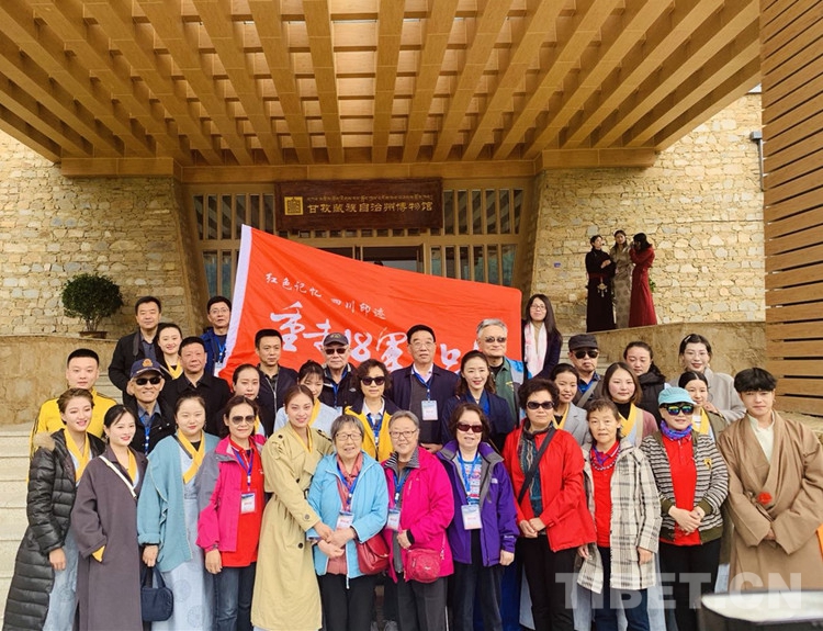 圖為十八軍老戰(zhàn)士和十八軍子弟在甘孜藏族自治州博物館合影。