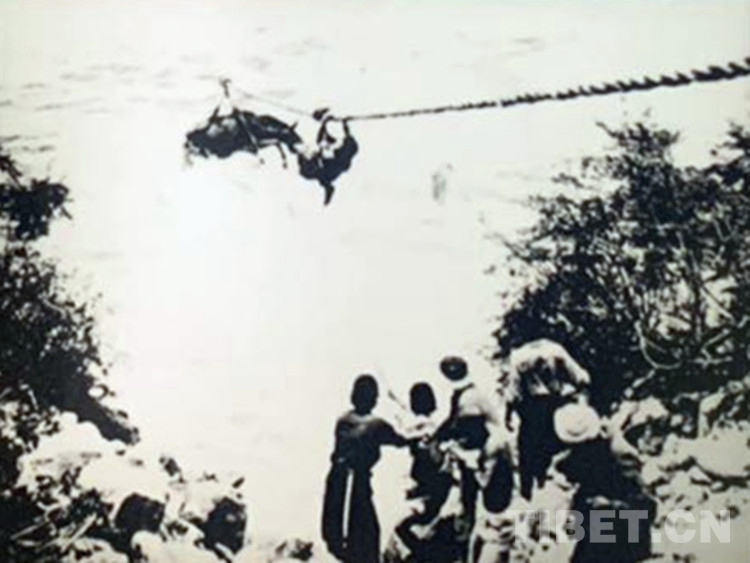 背夫們渡河時多采用溜索,這是古老的交通方式,用兩條或一條繩索,分別系于河流兩岸的樹木或其他固定物上。一頭高,一頭低,形成高低傾斜。溜索不僅可以溜渡人,而且還可以溜渡貨物、牲畜等。