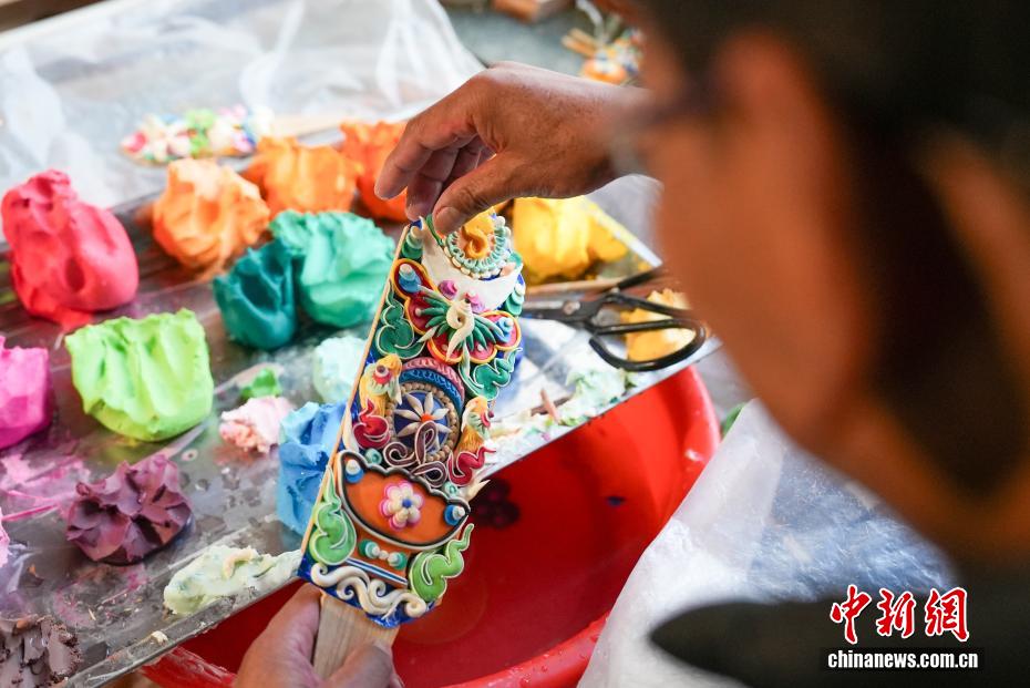 2月4日,隨著藏歷新年臨近,拉薩街頭年味漸濃,年貨市場(chǎng)上的“孜扎”迎來(lái)熱銷。酥油花藏語(yǔ)稱“孜扎”,是藏歷新年吉祥物切瑪盒的重要組件,也是藏族民眾家中必備的年貨。酥油花以酥油為主要原料,由匠人純手工捏制而成,造型涵蓋佛像、人物、花卉樹(shù)木、飛禽走獸等,常見(jiàn)圖案包含吉祥八寶、和諧四瑞、長(zhǎng)壽圖等,承載著藏族民眾對(duì)新年平安吉祥、萬(wàn)事順?biāo)斓拿篮闷碓浮D為手工藝人在制作酥油花。貢確 攝