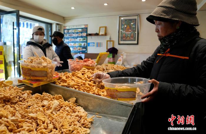 隨著春節(jié)、藏歷新年日益臨近,西藏拉薩街頭年味漸濃。4日,在拉薩市城關(guān)區(qū)林廓北路等路段,沿街不少商店都在制作、售賣卡塞。