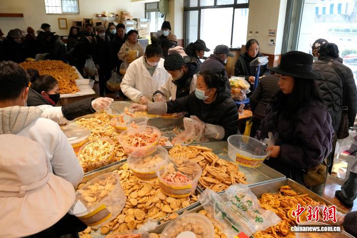 卡塞是一種用白面、酥油等原料制作的油炸面,是藏族家庭過年必不可少的年貨。制作卡塞時,將和好的面切片,捏出條形、方形、蝴蝶形等不同形狀,在油鍋里炸至金黃。隨后再撒上白糖,整齊擺放。香甜可口、樣式精美的卡塞吸引著市民前來選購。