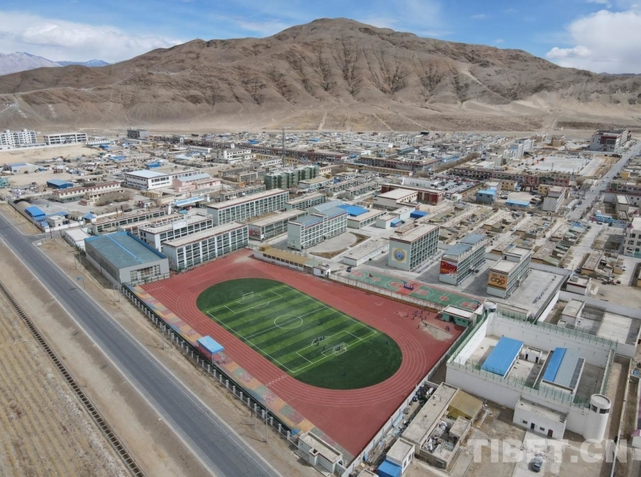 圖為河北援建的日土縣九年一貫制學(xué)校運動場
