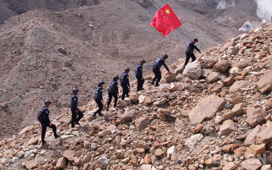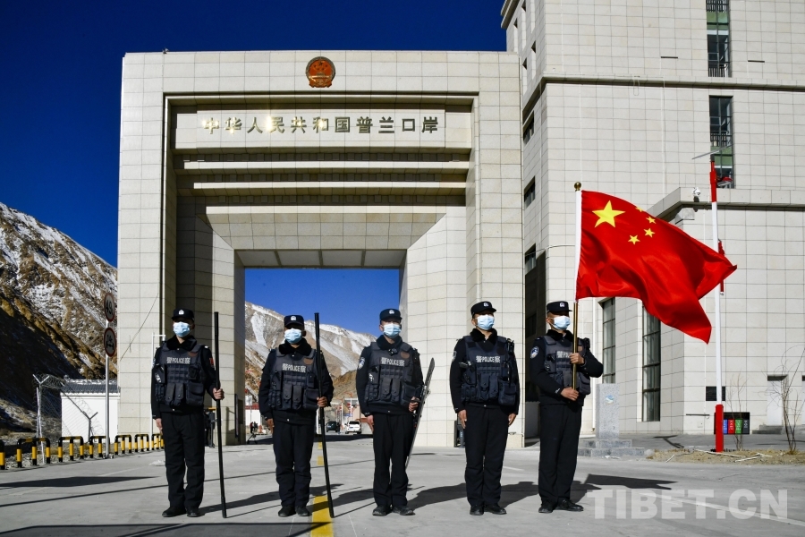 上午11時(shí),凜冽的寒風(fēng)中,5名移民管理警察整裝待發(fā)。他們從普蘭口岸國(guó)門出發(fā),朝著中尼界樁的方向,踏上了巡邏之路。