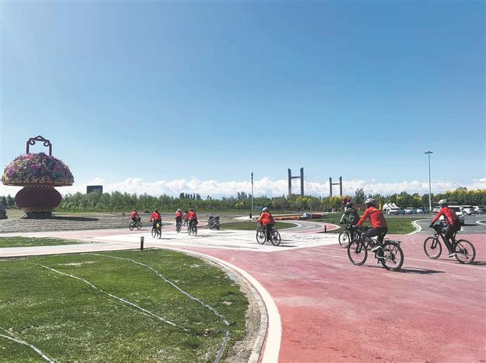 8月24日,四師可克達(dá)拉市萬(wàn)畝花海中,騎行愛(ài)好者自由馳騁,勾勒出一幅生機(jī)盎然的生態(tài)畫(huà)卷。 兵團(tuán)日?qǐng)?bào)常駐記者 李惠 攝