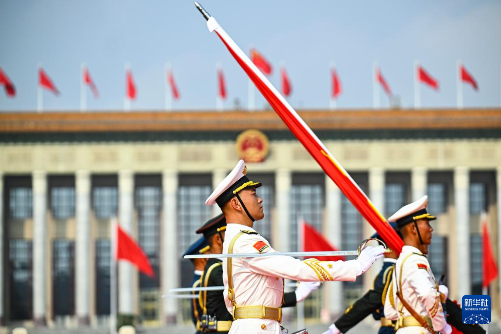 9月3日,紀(jì)念中國人民抗日戰(zhàn)爭暨世界反法西斯戰(zhàn)爭勝利80周年大會在北京隆重舉行。這是國旗護(hù)衛(wèi)隊列隊。