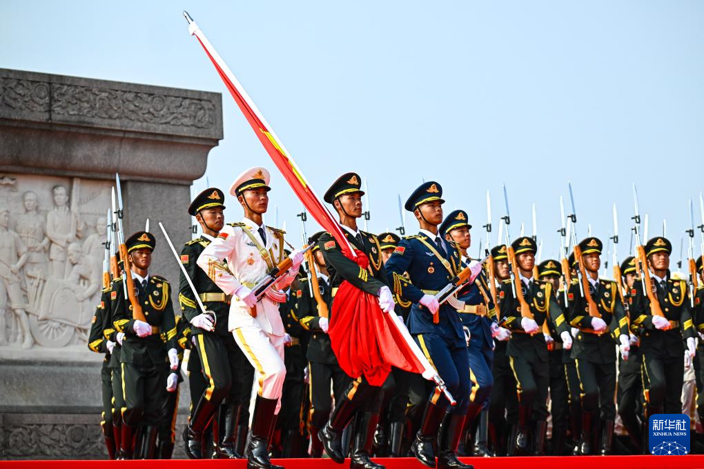 9月3日,紀(jì)念中國人民抗日戰(zhàn)爭暨世界反法西斯戰(zhàn)爭勝利80周年大會在北京隆重舉行。這是國旗護(hù)衛(wèi)隊在天安門廣場上列隊。