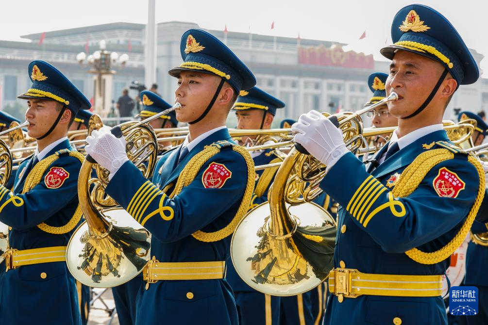 9月3日,紀(jì)念中國人民抗日戰(zhàn)爭暨世界反法西斯戰(zhàn)爭勝利80周年大會在北京隆重舉行。這是中國人民解放軍聯(lián)合軍樂團(tuán)在演奏。