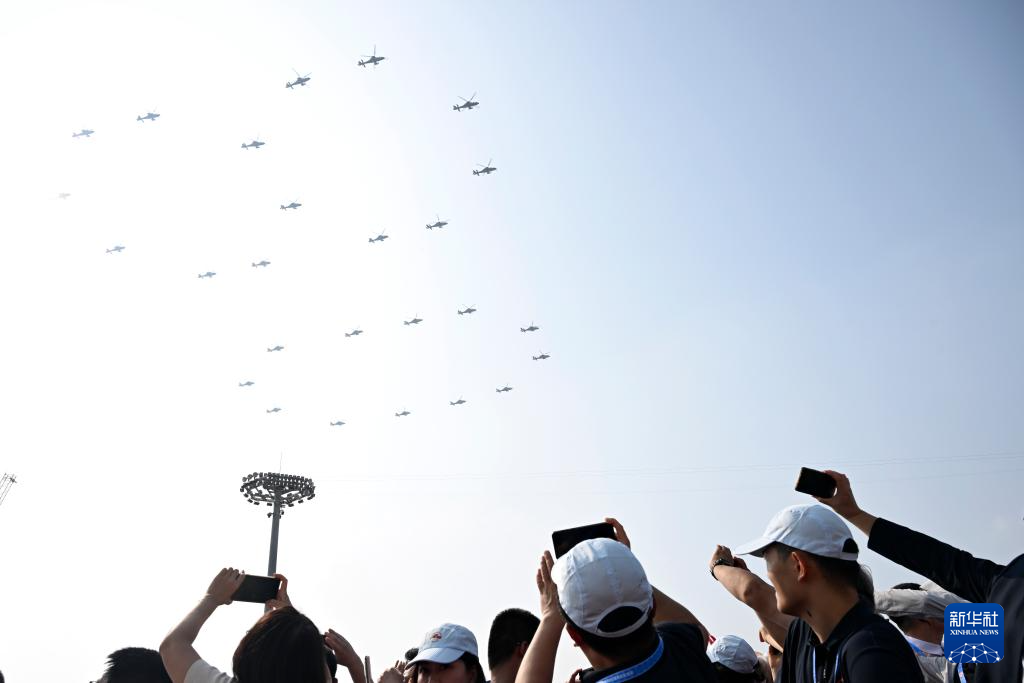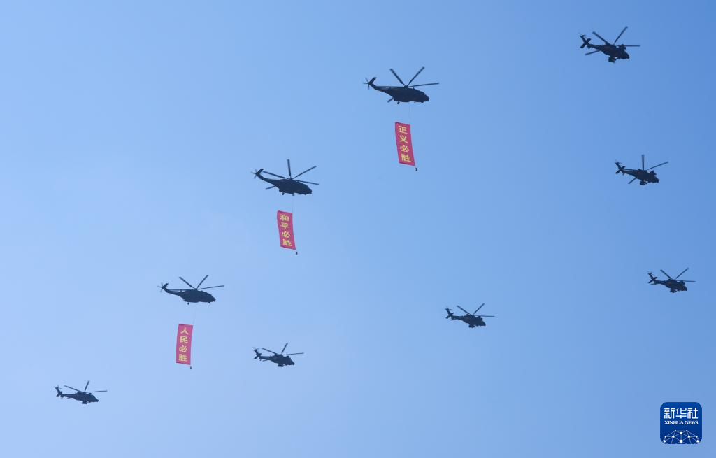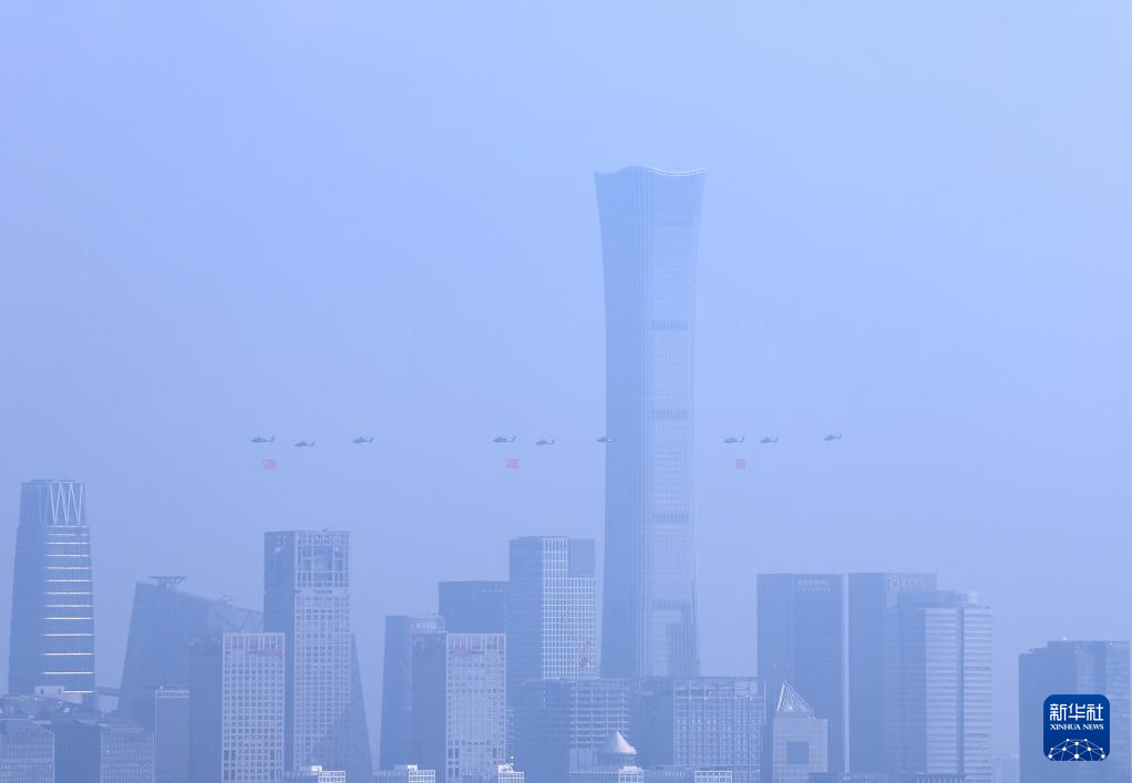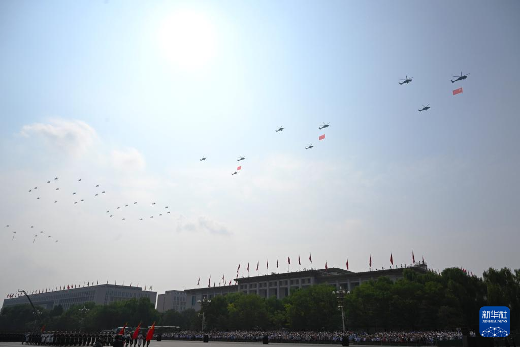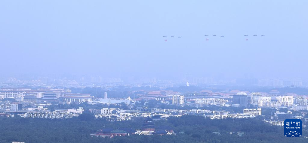 9月3日,紀(jì)念中國人民抗日戰(zhàn)爭暨世界反法西斯戰(zhàn)爭勝利80周年大會在北京隆重舉行。這是空中護(hù)旗梯隊。