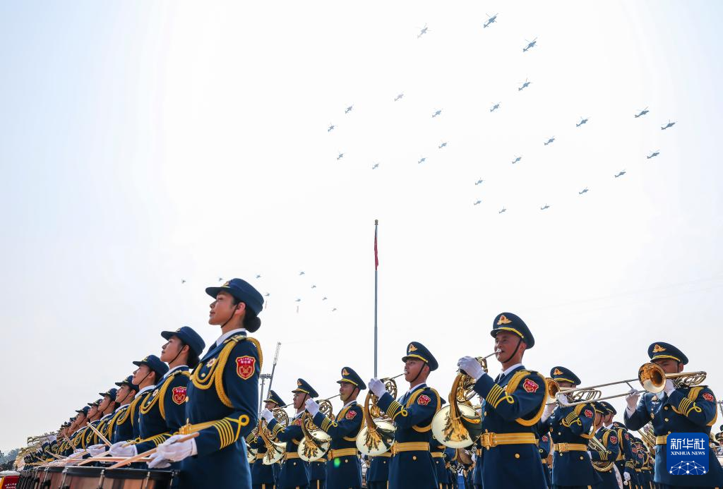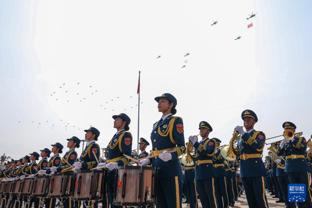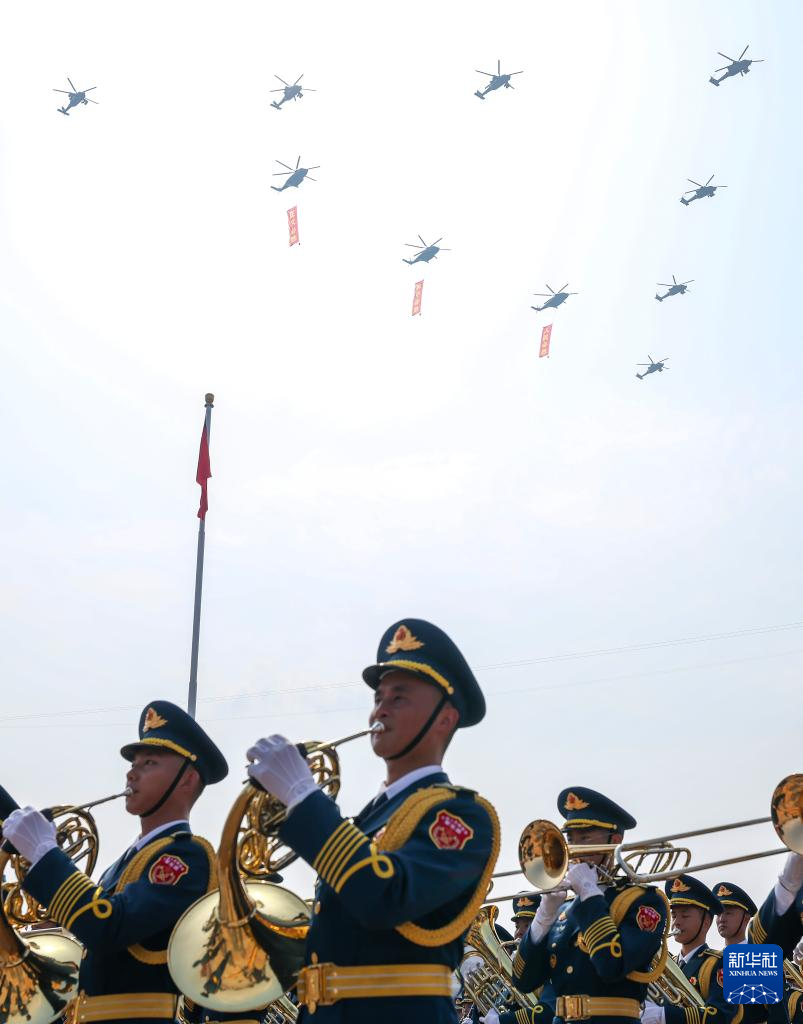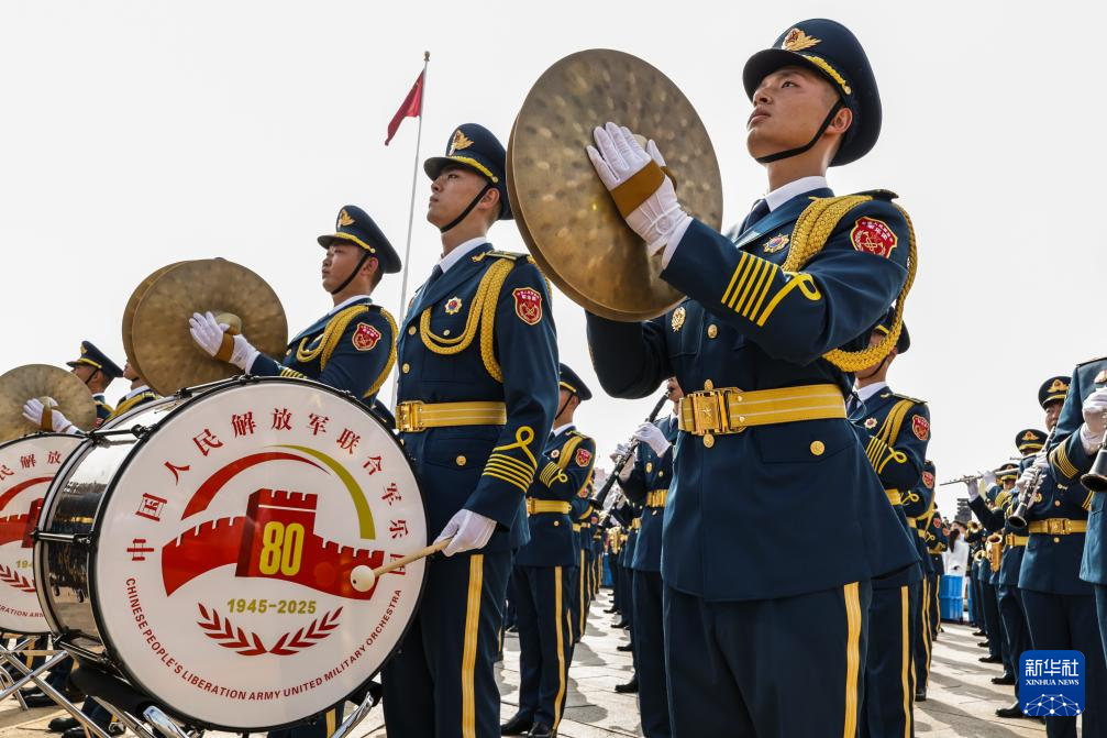 9月3日,紀(jì)念中國人民抗日戰(zhàn)爭暨世界反法西斯戰(zhàn)爭勝利80周年大會在北京天安門廣場隆重舉行。這是中國人民解放軍聯(lián)合軍樂團(tuán)在演奏。