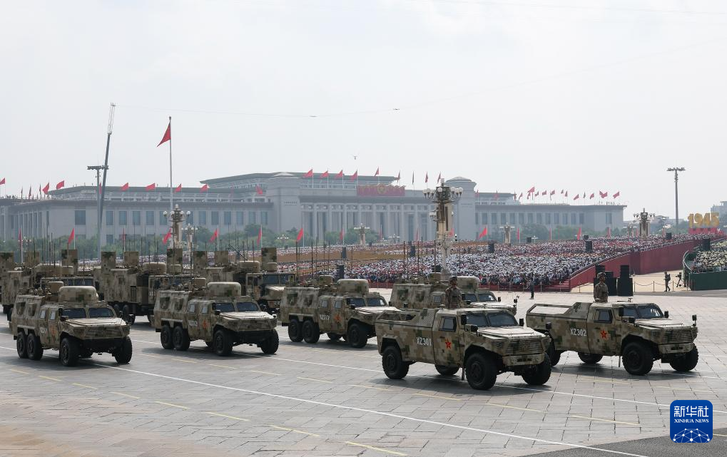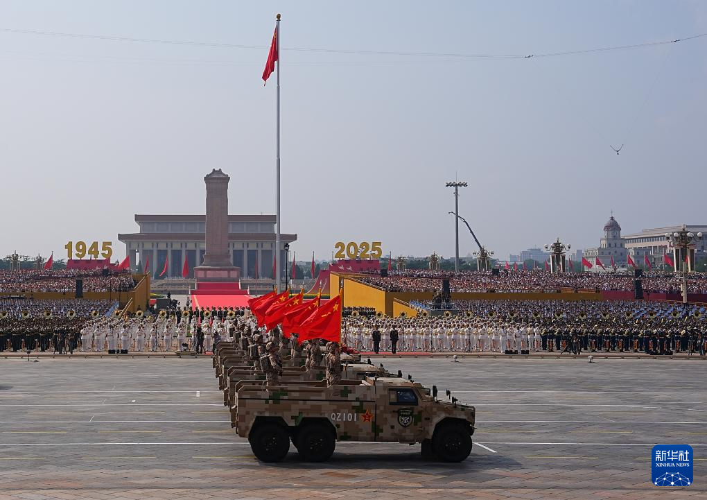 9月3日,紀(jì)念中國人民抗日戰(zhàn)爭暨世界反法西斯戰(zhàn)爭勝利80周年大會在北京隆重舉行。這是信息支援方隊接受檢閱。
