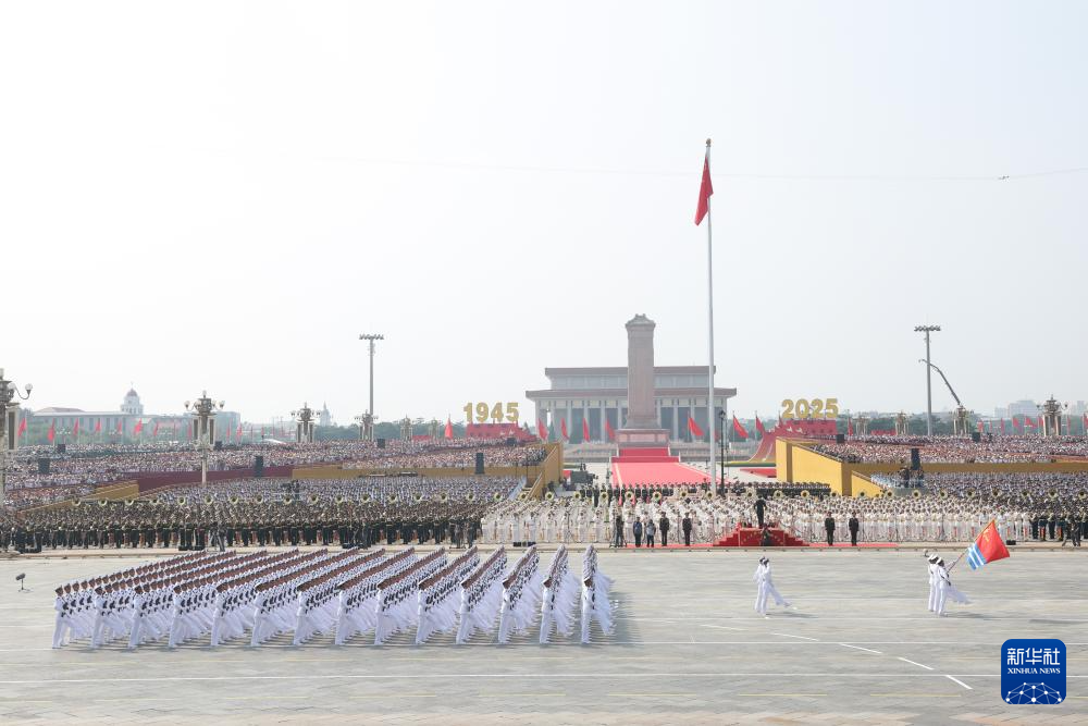 9月3日,紀(jì)念中國人民抗日戰(zhàn)爭暨世界反法西斯戰(zhàn)爭勝利80周年大會在北京隆重舉行。這是海軍方隊走過天安門廣場。