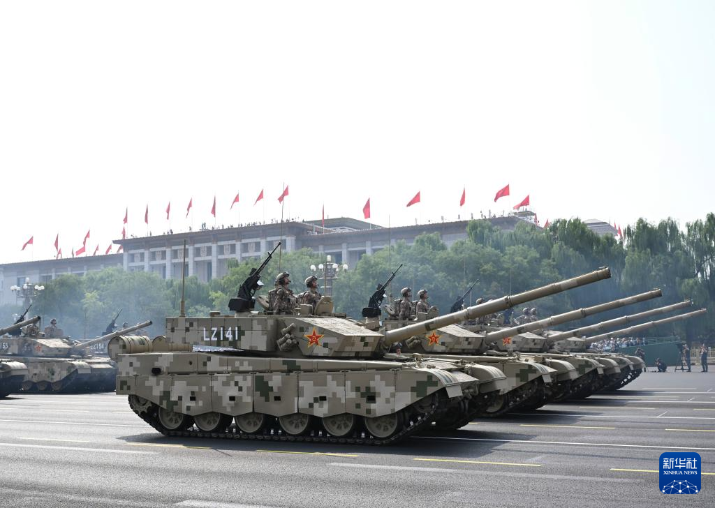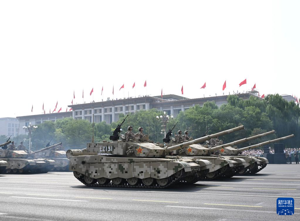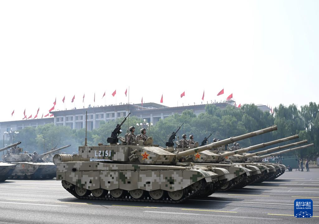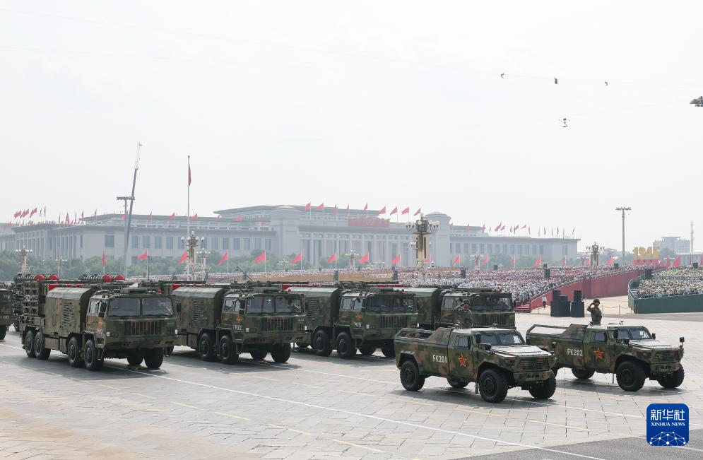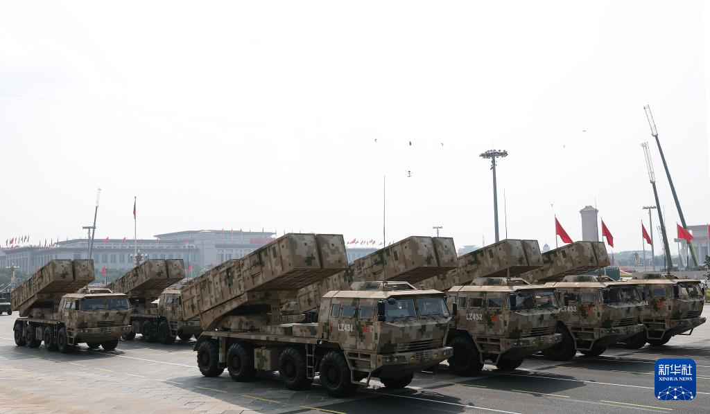 9月3日,紀(jì)念中國人民抗日戰(zhàn)爭暨世界反法西斯戰(zhàn)爭勝利80周年大會在北京隆重舉行。這是遠(yuǎn)程火炮方隊接受檢閱。