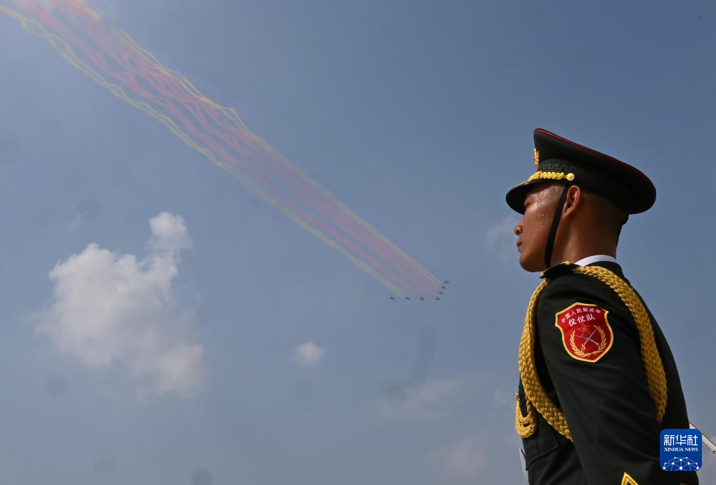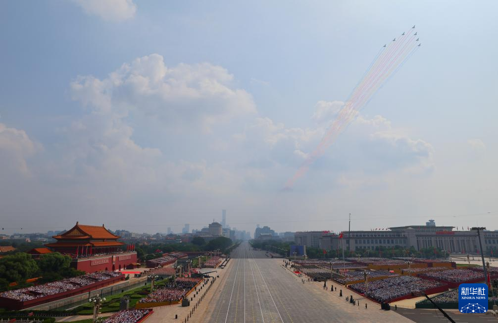 9月3日,紀(jì)念中國人民抗日戰(zhàn)爭暨世界反法西斯戰(zhàn)爭勝利80周年大會在北京隆重舉行。這是空中梯隊接受檢閱。