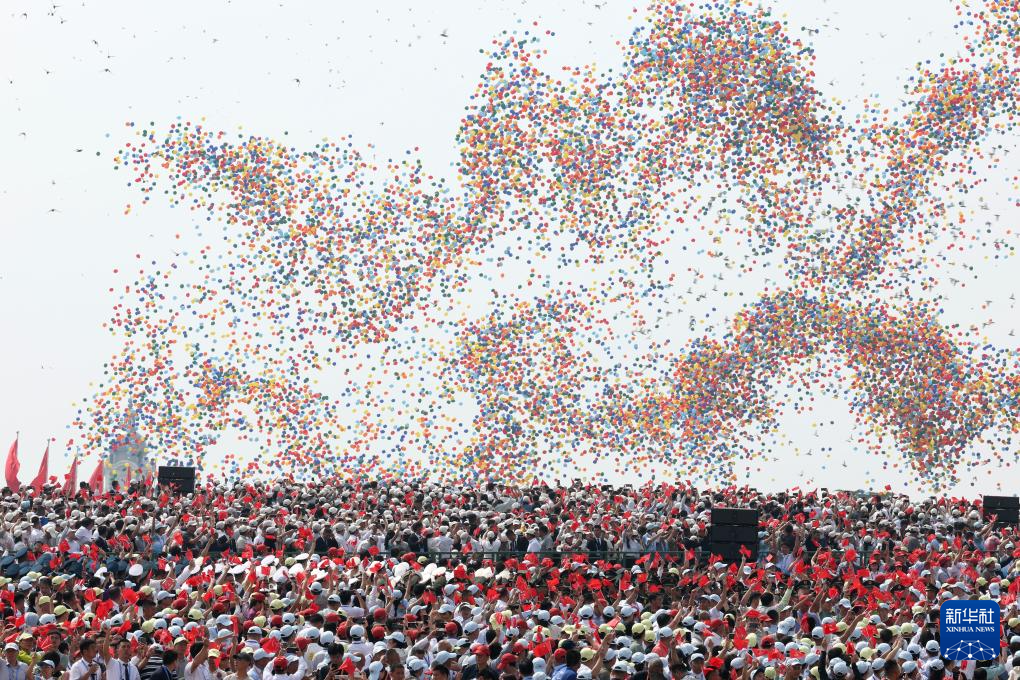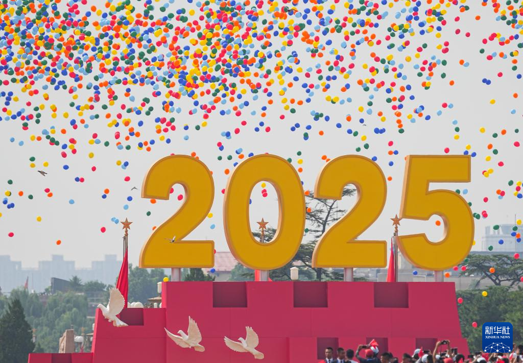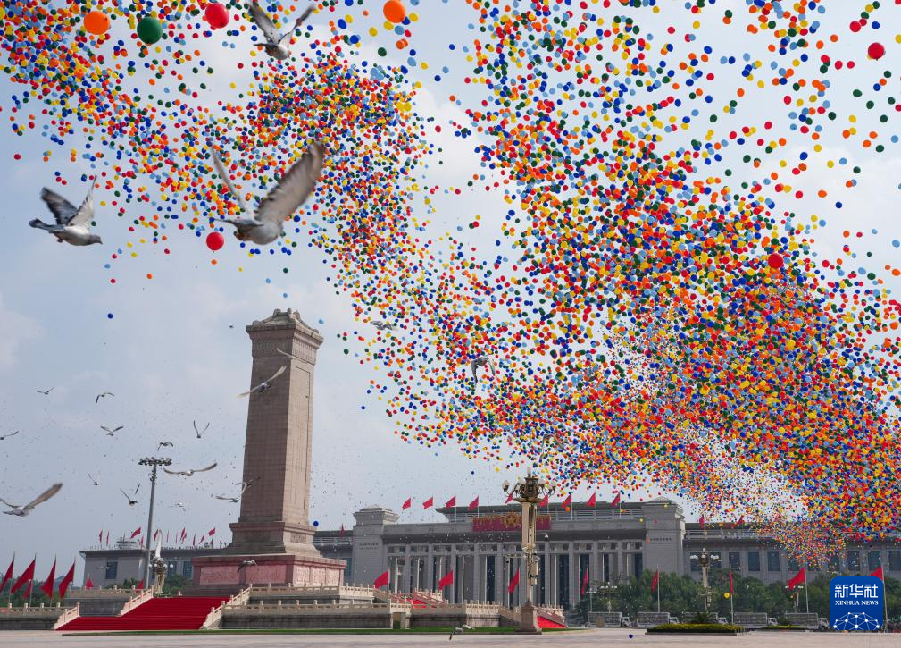 9月3日,紀(jì)念中國人民抗日戰(zhàn)爭暨世界反法西斯戰(zhàn)爭勝利80周年大會在北京隆重舉行。這是紀(jì)念大會現(xiàn)場放飛氣球。