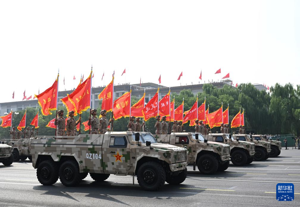 9月3日,紀(jì)念中國人民抗日戰(zhàn)爭暨世界反法西斯戰(zhàn)爭勝利80周年大會在北京隆重舉行。這是戰(zhàn)旗方隊接受檢閱。