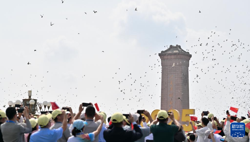 9月3日,紀(jì)念中國人民抗日戰(zhàn)爭暨世界反法西斯戰(zhàn)爭勝利80周年大會在北京隆重舉行。這是天安門廣場放飛鴿子。