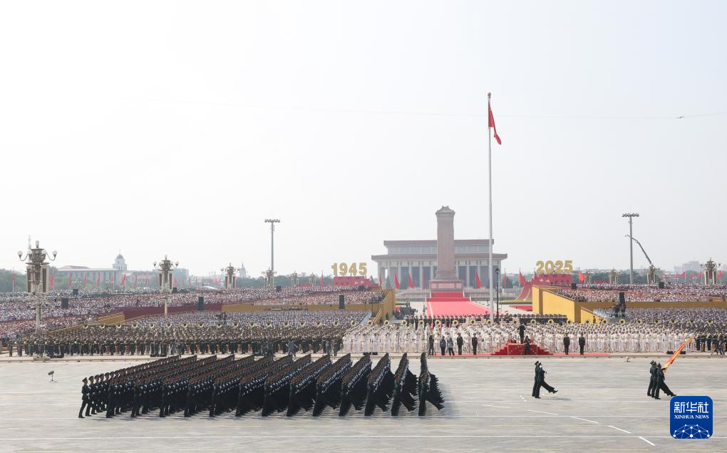 9月3日,紀(jì)念中國人民抗日戰(zhàn)爭暨世界反法西斯戰(zhàn)爭勝利80周年大會在北京隆重舉行。這是儀仗方隊接受檢閱。