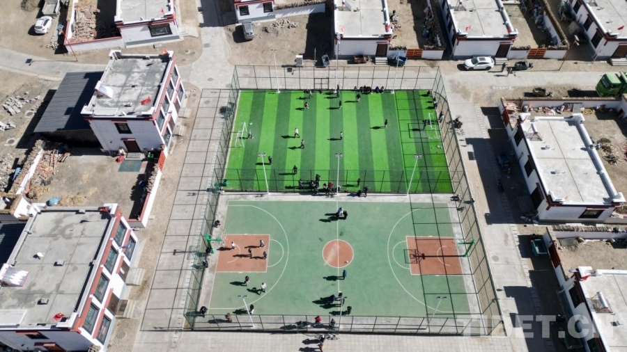 圖為長(zhǎng)所鄉(xiāng)森嘎村新建的兩塊標(biāo)準(zhǔn)化運(yùn)動(dòng)場(chǎng)地 攝影:趙振宇