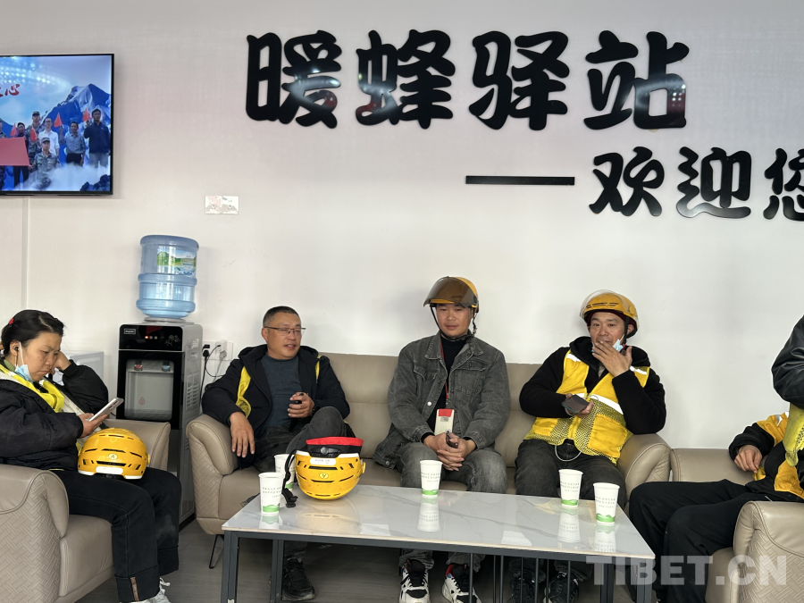 圖為墨脫縣外賣(mài)員在“暖蜂驛站”休息聊天