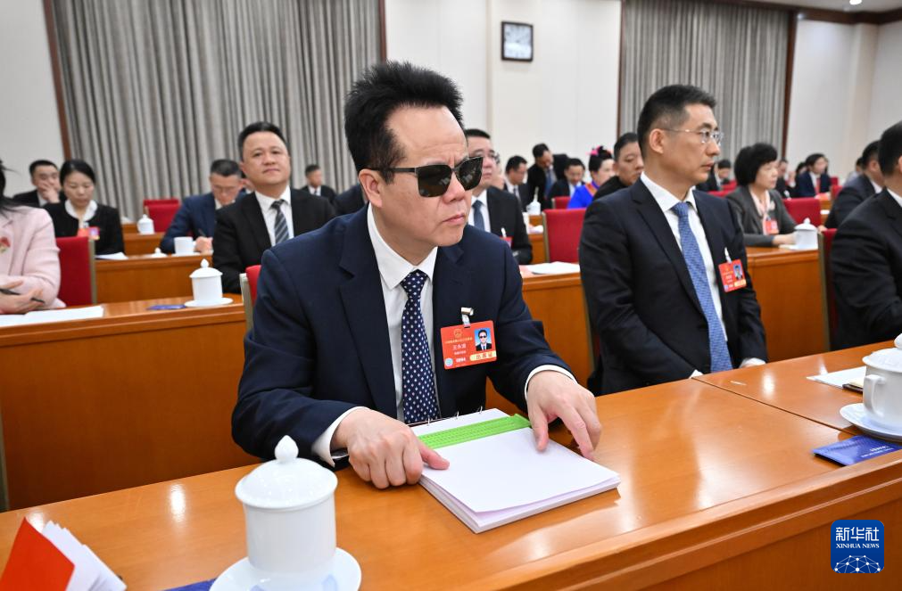 3月5日,代表們在貴州代表團全體會議上認真聽會。當(dāng)日下午,十四屆全國人大三次會議各代表團舉行全體會議,審議政府工作報告。新華社記者 翟健嵐 攝