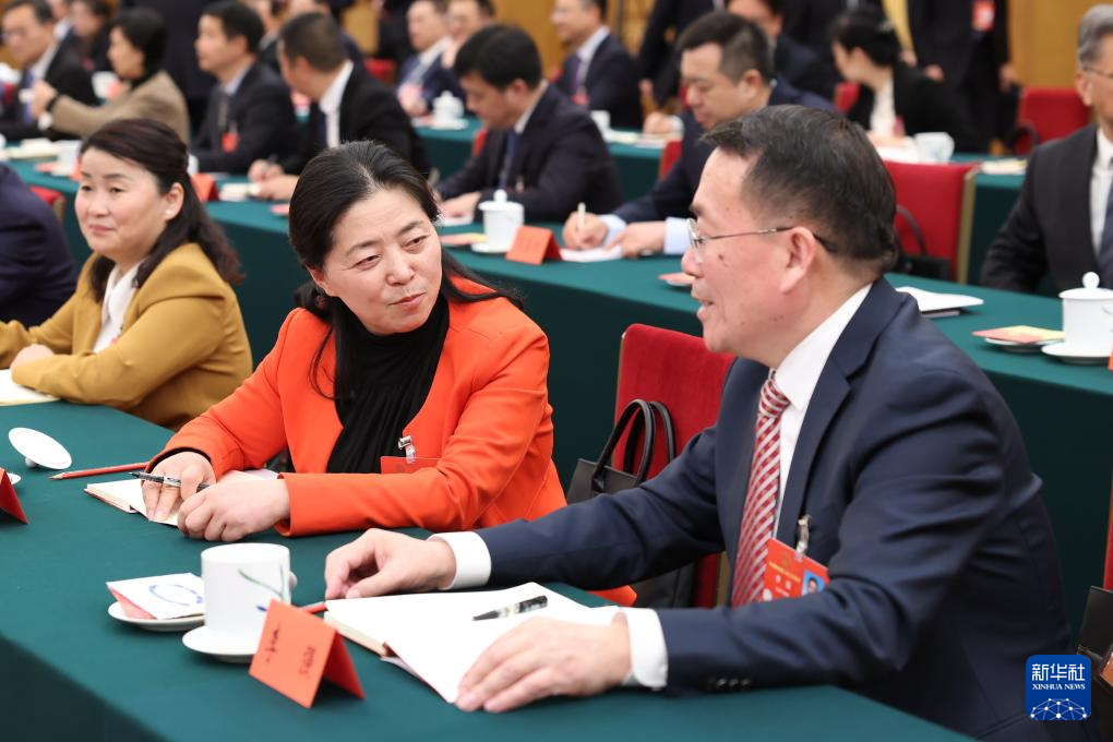 3月5日,代表們在四川代表團全體會議前交談。當(dāng)日下午,十四屆全國人大三次會議各代表團舉行全體會議,審議政府工作報告。新華社記者 劉衛(wèi)兵 攝