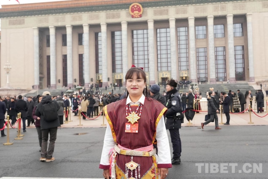 十四屆全國人大四次會議開幕會后,羅布央宗在人民大會堂前留影