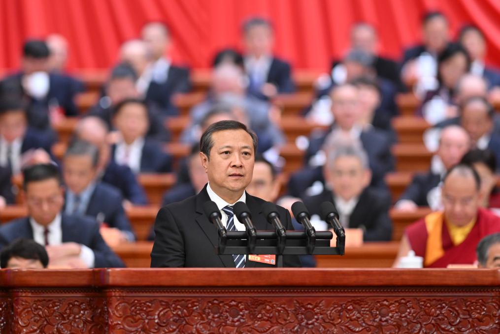 3月8日,全國政協(xié)十四屆四次會(huì)議在北京人民大會(huì)堂舉行第三次全體會(huì)議。這是班禪額爾德尼·確吉杰布委員作題為《積極推進(jìn)宗教與社會(huì)主義社會(huì)相適應(yīng) 為中華民族偉大復(fù)興貢獻(xiàn)力量》的發(fā)言。新華社記者 岳月偉 攝